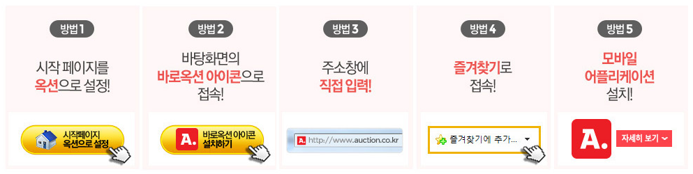 옥션 바로가기 설치법은 다양한 방법이 존재하는데요. 첫번째 방법은 시작페이지를 옥션으로 설정하는 방식으로 바로옥션에서 바로 진행이 가능합니다. 두번째 방법은 바탕화면에 바로옥션 아이콘 설치를 통해 옥션 바로가기를 진행하는 방법입니다.