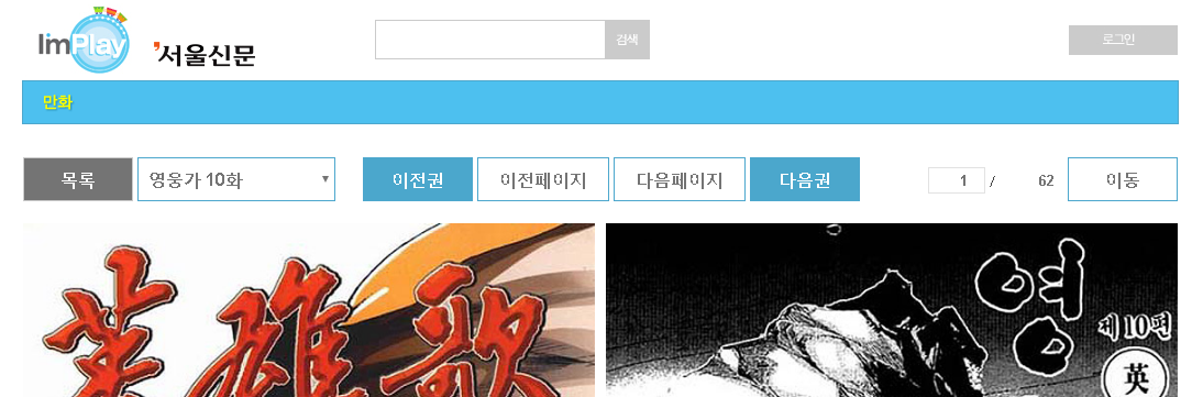 따로 뷰어프로그램의 설치도 필요 없이 웹브라우저 내에서 페이지를 넘겨가면서 볼 수 있기 때문에 pc나 모바일 모두 간편하게 인터넷만 되면 서울신문 만화감상을 하실 수 있습니다.
