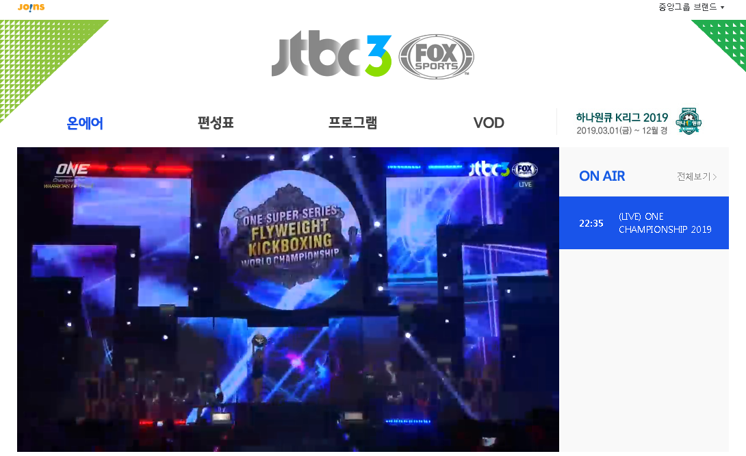 예외로 스포츠 중계전문 채널인 jtbc3 fox sports 같은 경우는 로그인이 없이도 바로 현재 진행 중인 jtbc3 온에어를 볼 수 있게 서비스를 제공하는데요. 따라서 해당 방송사에서 보여주는 축구, 테니스 등의 경기를 보기에 편리합니다.