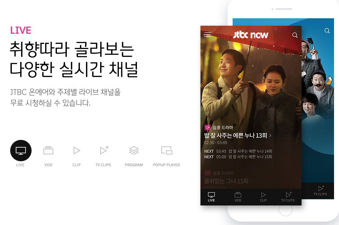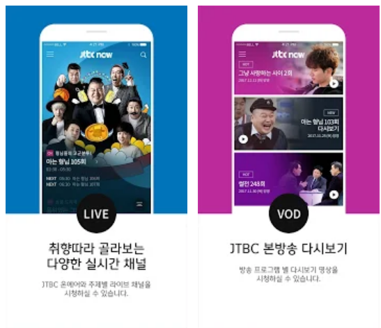 안드로이드버전과 아이폰버전이 존재하여 구글플레이와 앱스토어에서 간편하게 다운로드 받을 수 있구요. jtbc온에어와 주제별 라이브 채널을 무료시청할 수 있는 서비스를 제공합니다.