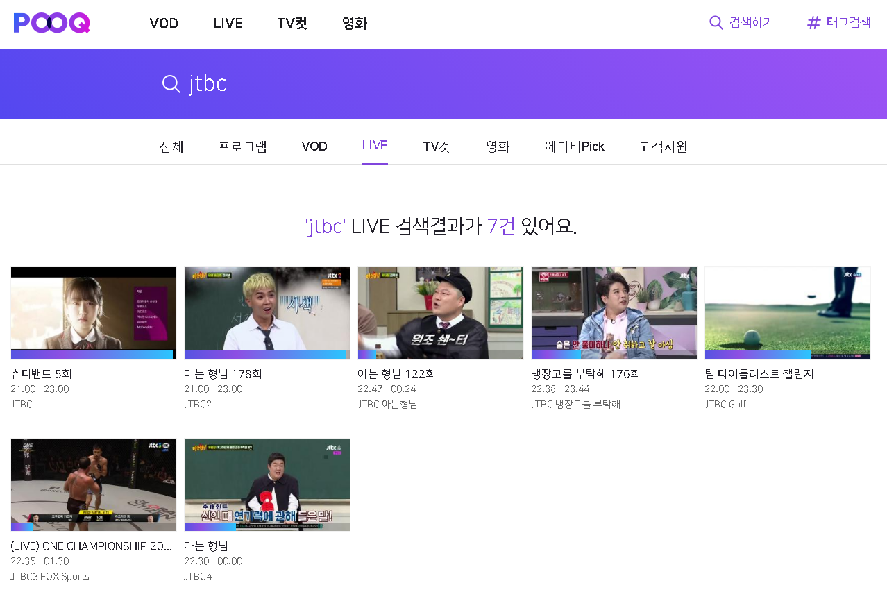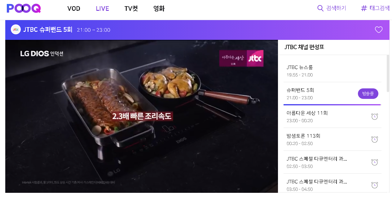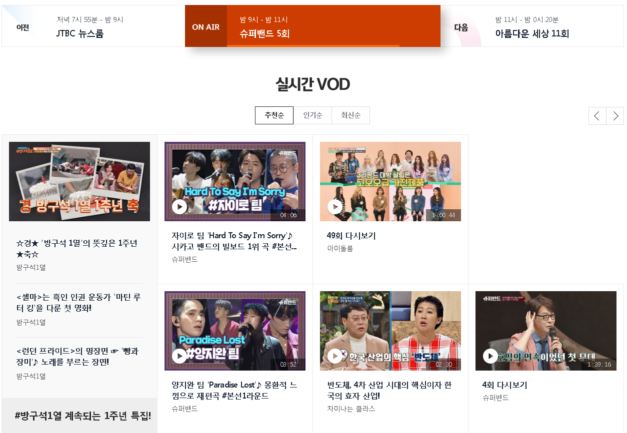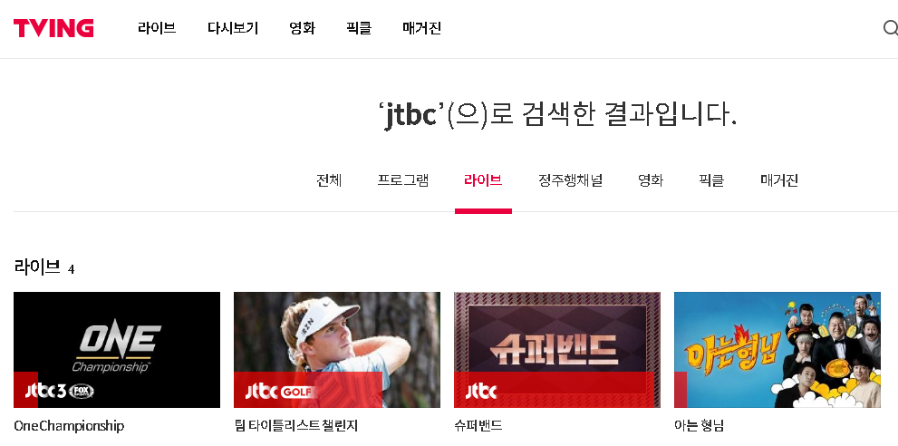 jtbc에서 공식적으로 제공하는 서비스 외에도 jtbc온에어를 제공하는 다른 곳들도 존재하는데요. N스크린 동영상 플랫폼인 티빙에서는 jtbc 라이브를 통해 온에어 방송을 보실 수 있습니다. 티빙 아이디가 있다면 여기에서 시청을 하시는 것도 괜찮아 보이네요.