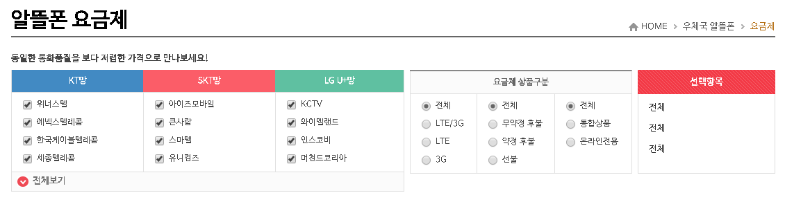 우체국 알뜰폰 요금제 비교하기