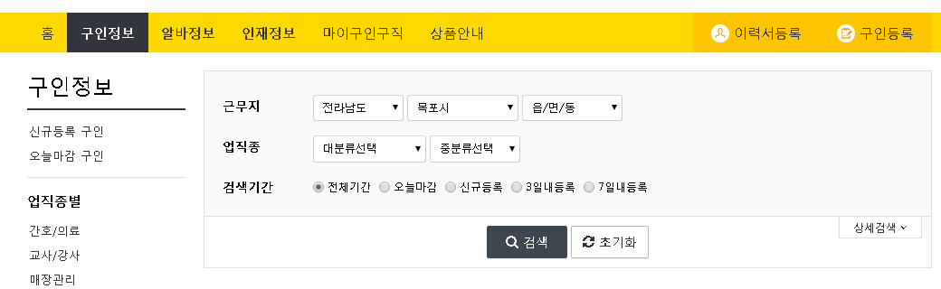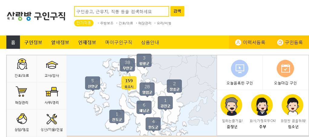 직원을 찾으시는 분이라면 인재정보를 통해 지역, 업직종, 옵션을 기반으로 검색을 하여 해당조건에 맞는 인재를 찾으실 수도 있답니다. 만약에 컴퓨터 사용이 어려워 검색을 기반으로 구직활동을 하기 힘드시다면 목포사랑방신문 그대로보기 서비스를 이용하시면 됩니다.